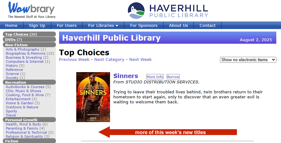 Do you want to be among the first to learn about new arrivals at the Haverhill Public Library?  With Wowbrary, you can receive FREE alerts about new items added to the library’s collection!