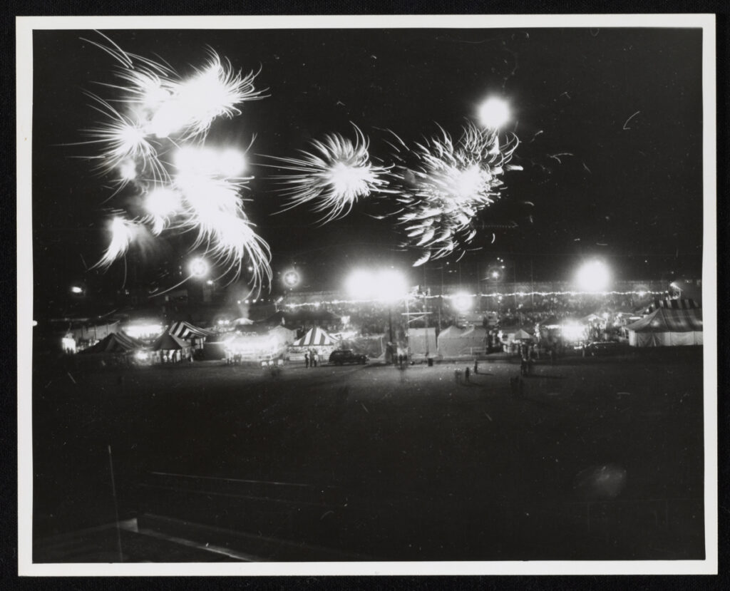 Haverhill Stadium, American Bicentennial celebration, fireworks, 1976. Item 31479006476716 in the Senter Digital Archive.